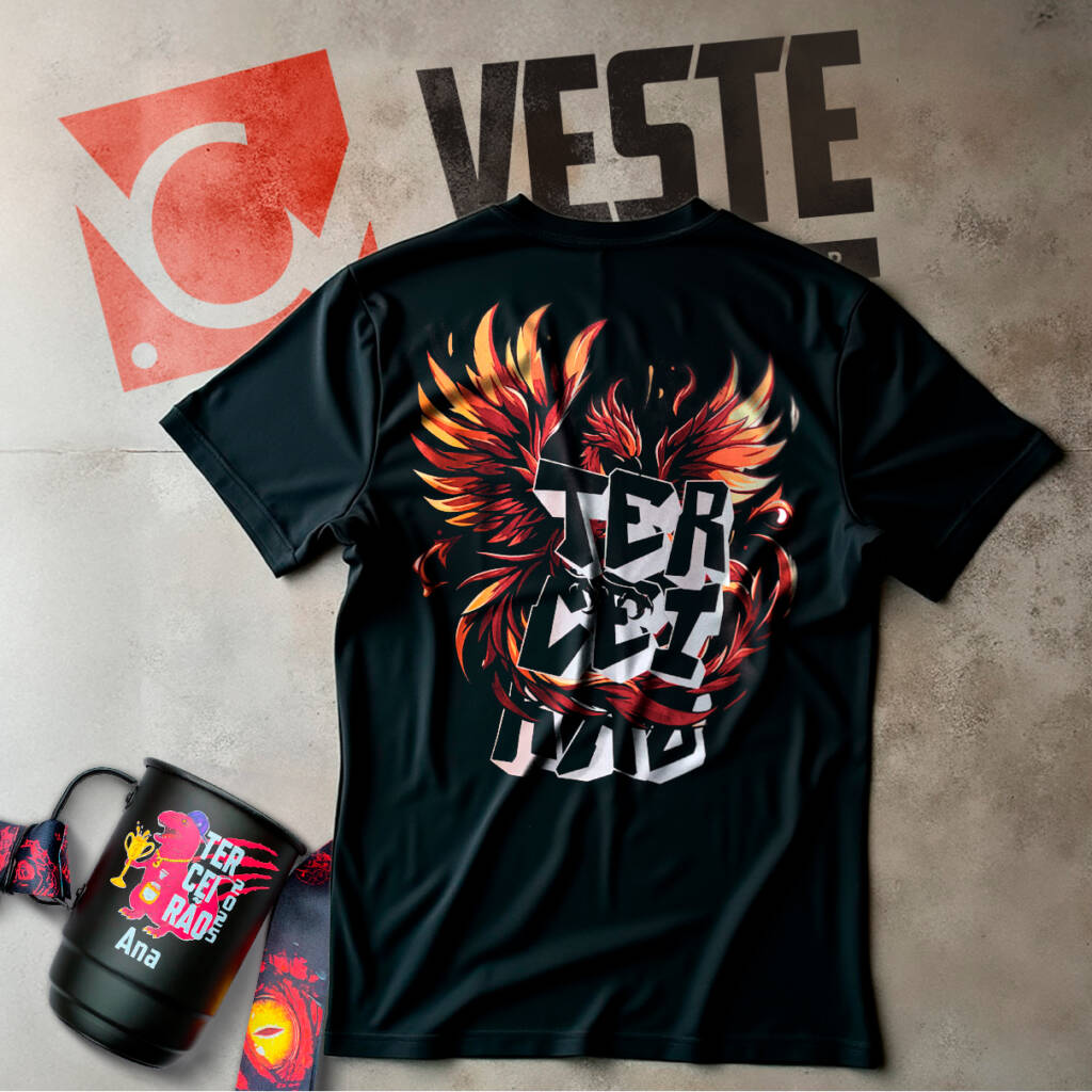 • Camisetas em malha PV, algodão premium e Dry fit.